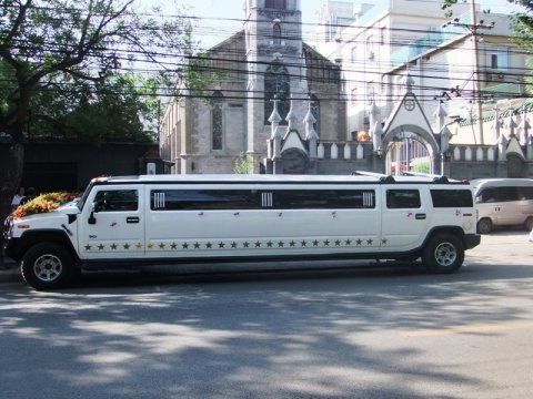 北京街頭看到的加長型禮車 上個月經過北京西直門天主堂時, 剛好看到一對新人在舉行婚禮, 他們用的加長型禮車啊, 套一句大陸當地人的形容辭: 真是太牛了~ 一般的禮車都是用轎車去改造, 這次看到的居然是悍馬軍用吉普車的加長版, 所以當即就街拍下來, 很多路人也都在圍觀… 到對街去, 再來一張.. 帥吧~哪一天幫謙謙辦婚禮, 也要來找這樣一部車…不過到那時可能有更炫的車型了…